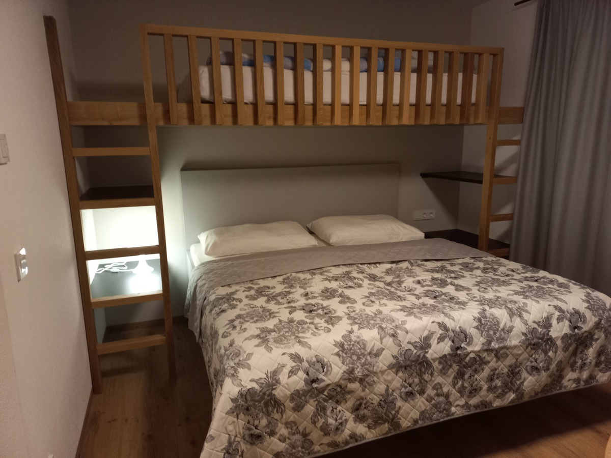 Schlafraum mit zusätzlichem Hochbett , Badezimmer mit Dusche und WC,